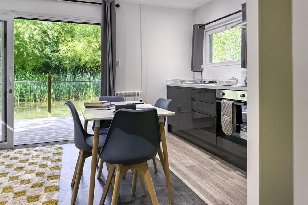 This modern floating lodge is made for easy, memory-making escapes. Wake to calm water and birdsong, brew a coffee in your well-equipped kitchen, then sink into the hot tub as the sun sets. Inside, you’ll find a comfy double bedroom, a separate bunk room for little ones (up to 12), a practical shower room and relaxed open-plan living with TV and Wi-Fi.