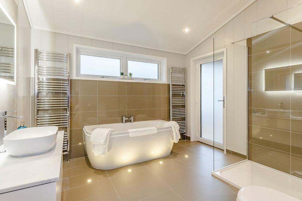 Slip away to a designer one-bed lodge made for two. Wake to birdsong, linger in the freestanding bath, then sip something chilled on your covered terrace before sinking into the private hot tub under the trees. Dine at the on-site bar and restaurant, play a round on the 18-hole course, or explore pretty Cambridgeshire villages and nearby Peterborough. With open-plan living, a king-size bedroom and a fully equipped kitchen, this is effortless, adults-only downtime.