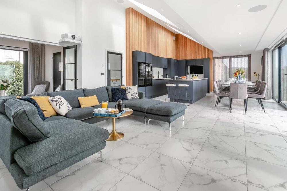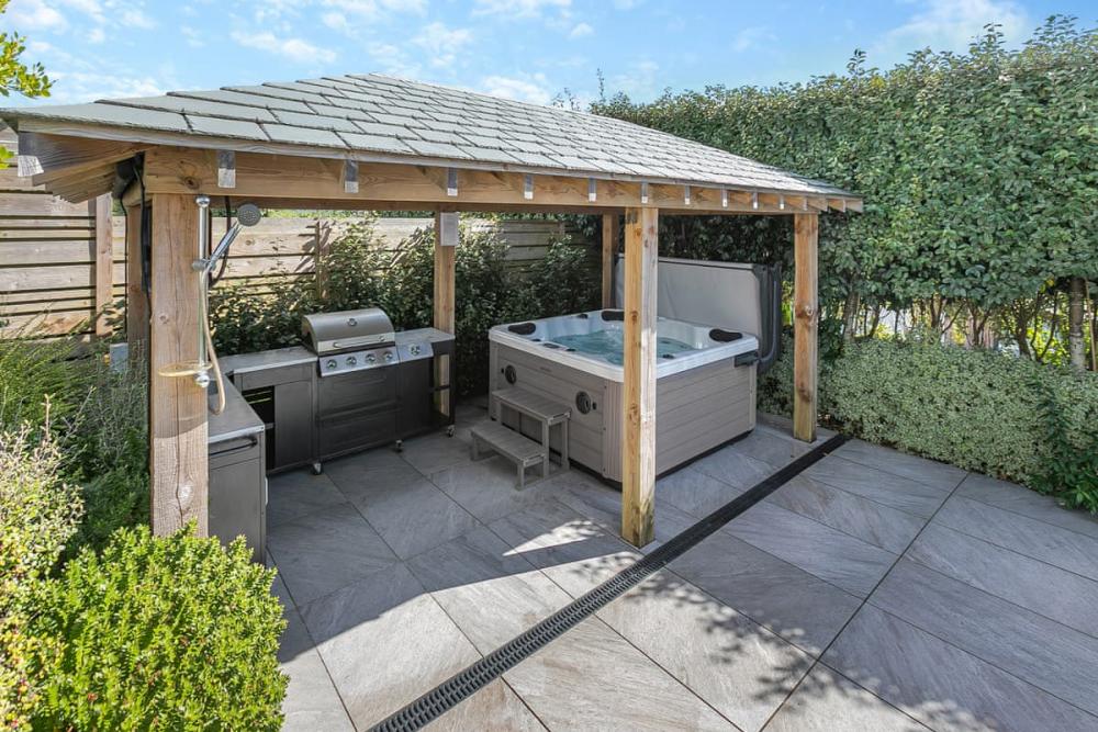 Light-filled open-plan living flows through bi-fold doors onto a sea-view balcony, while landscaped gardens, a covered hot tub for eight, firepit and gas BBQ create unforgettable outdoor moments. Inside, you’ll find four king bedrooms, one twin, three en-suites, a family bathroom, multiple lounge areas and a contemporary chef’s kitchen.