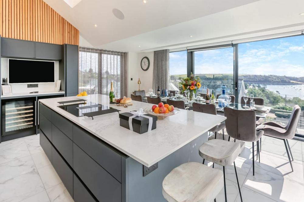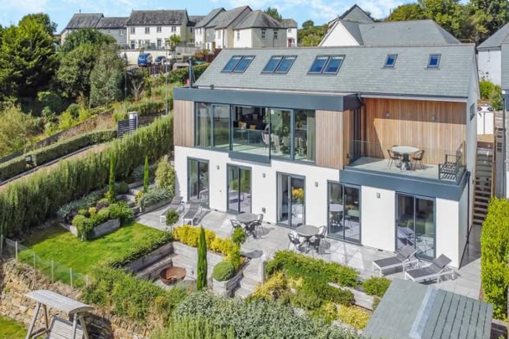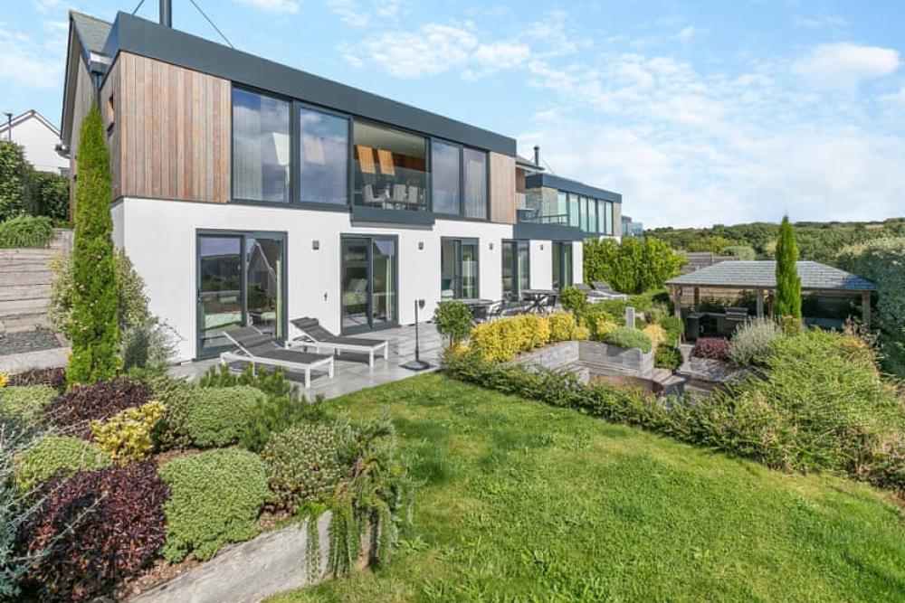 Five-bedroom ultra-luxury coastal home with hot tub and panoramic sea views on the Roseland Peninsula. Sleeps 10.
